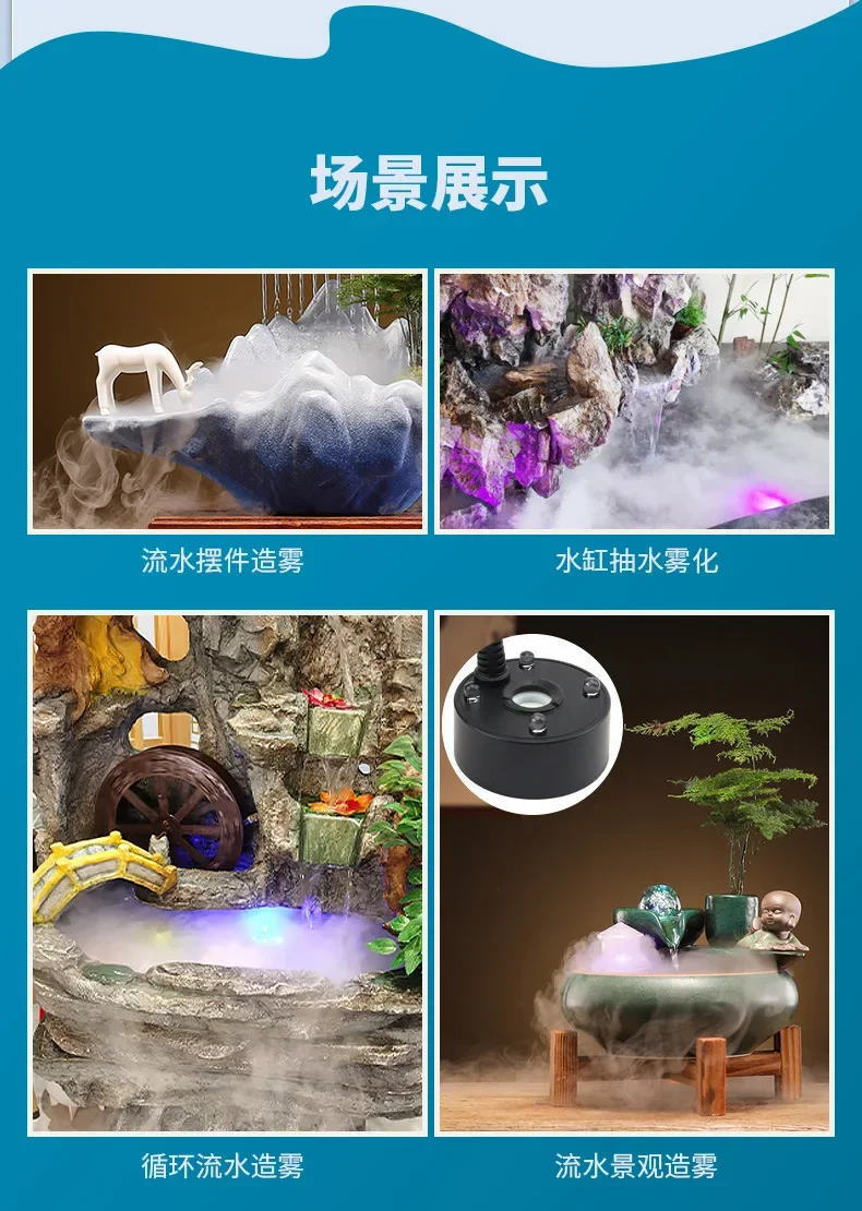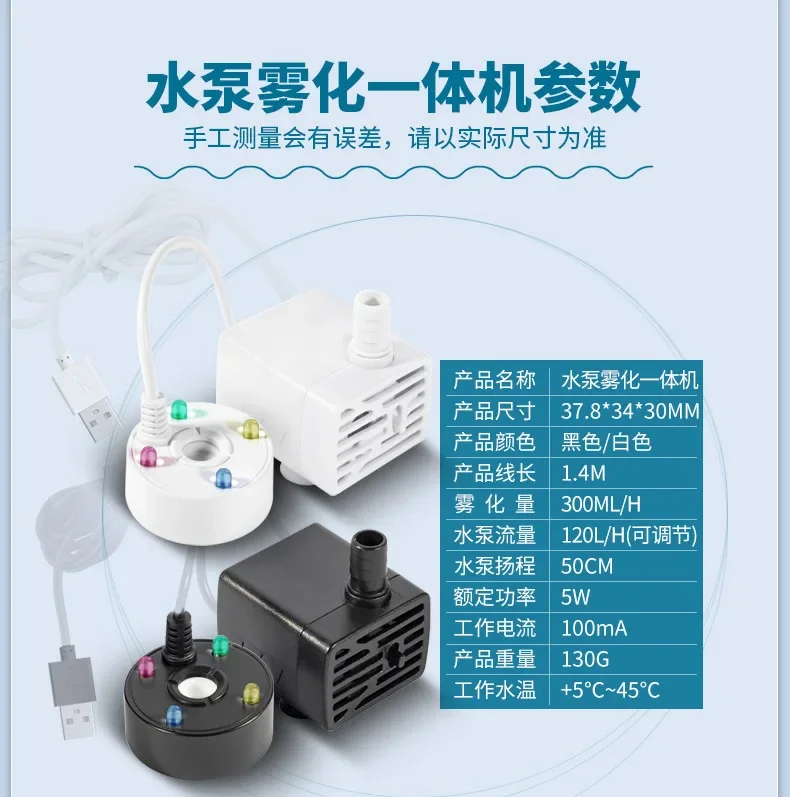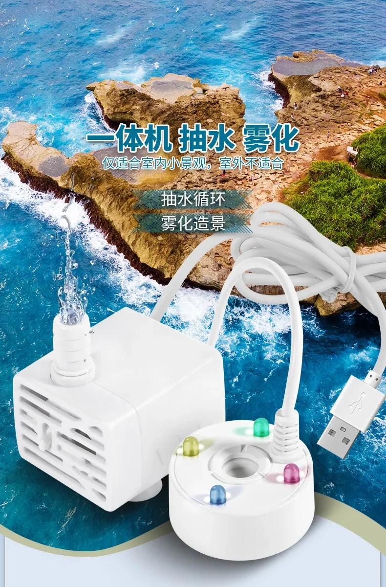 2-in-1 USB water pump & mist maker can add a stunning mist effect to your pond, simultaneously achieving water flow circulation, rockery or fish tank to filter the bad smell with electro and ultrasonic technology.